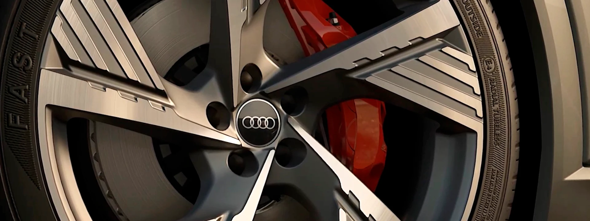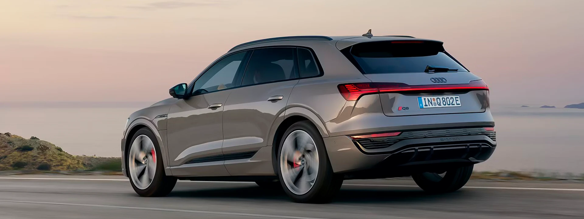 Detalhes como o nome do modelo gravado a laser no pilar B, os anéis Audi em um novo visual e os logotipos e-tron são uma expressão da linguagem de design em constante evolução.