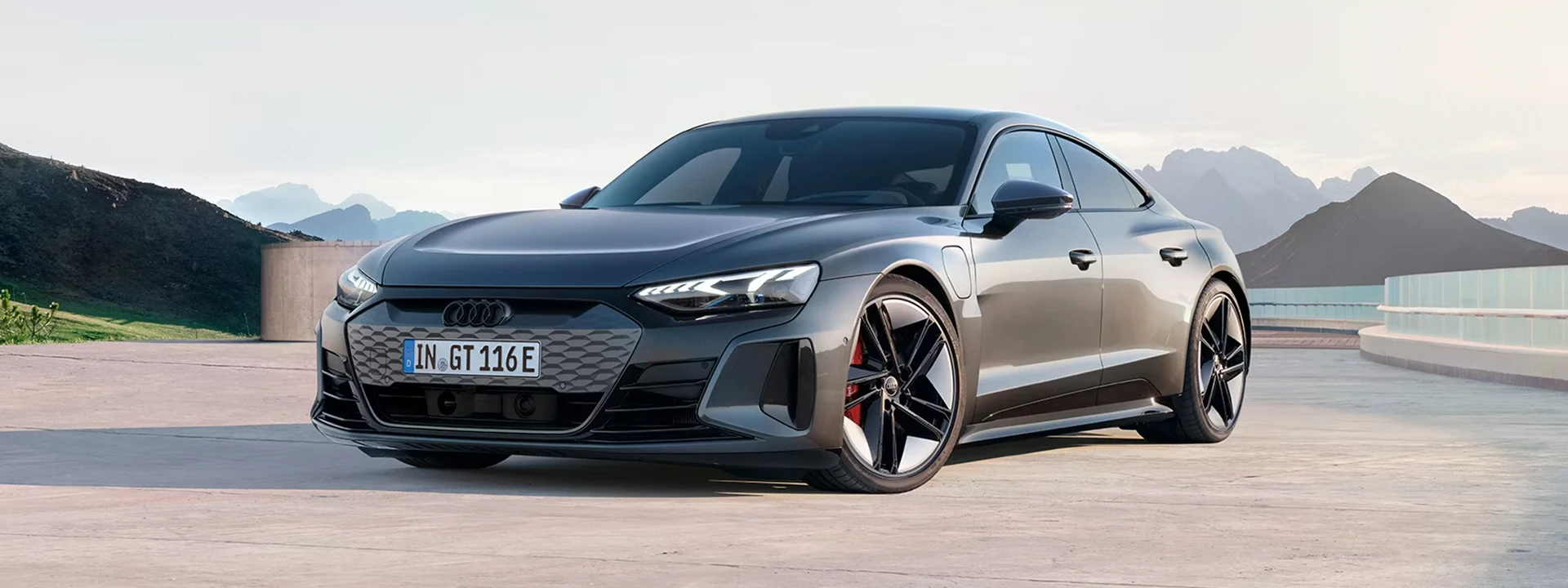 A linha de ombro ousada pronunciada, assim como o difusor traseiro diferenciado, dá ao Audi RS e-tron GT uma aparência impactante de força. Por sua vez, a linha de teto levemente inclinada, que se alonga até a traseira do veículo, expressa o quanto almeja por velocidade, mesmo quando ele está estacionado.