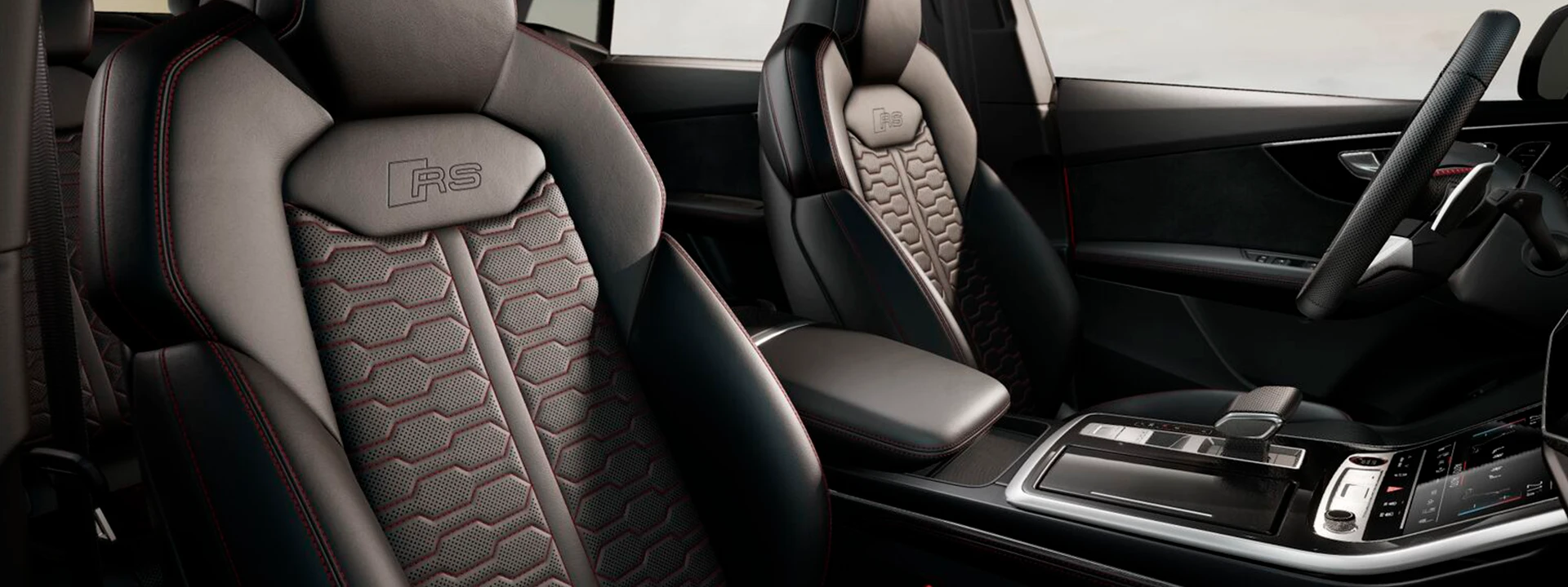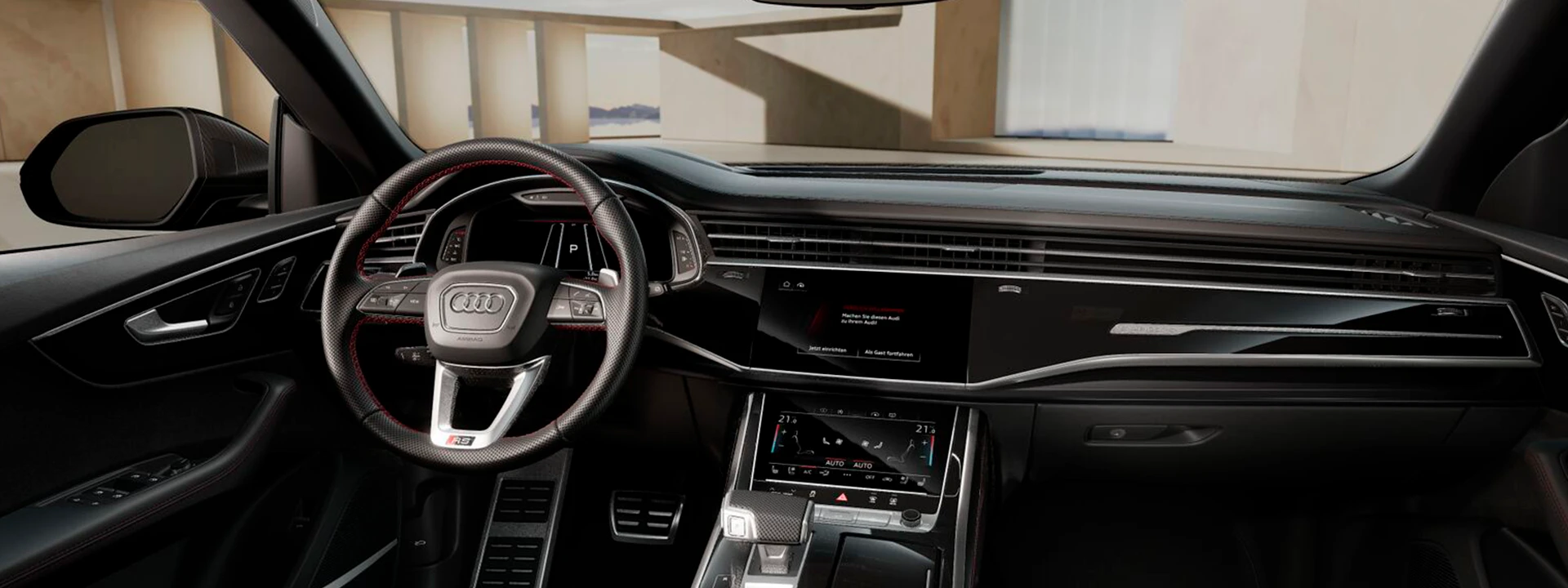 Transforme seu novo Audi RS Q8 Performance em um carro inspirador e único, tão inconfundível quanto você – com Audi Exclusive. Com acabamentos selecionados, couro colorido e acabamentos individuais em uma ampla gama de cores. Do jeito que você quer.